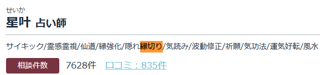③占術・得意な相談内容に「縁切り」とある