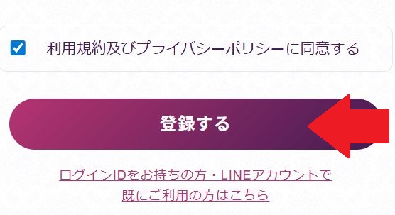 入力内容を確認したら、「利用規約及びプライバシーポリシーに同意する」にチェックを入れて、「登録する」ボタンをタップ。