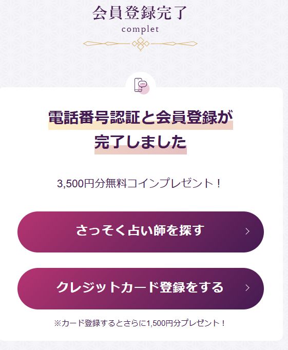 • 新規登録から30日以内に2回目の鑑定で1,000コイン(1,000円分) → 合計8,500円分
