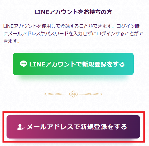 ※LINEアカウントでの登録も選べますが、ここではメールアドレスで登録する場合の手順を解説します。