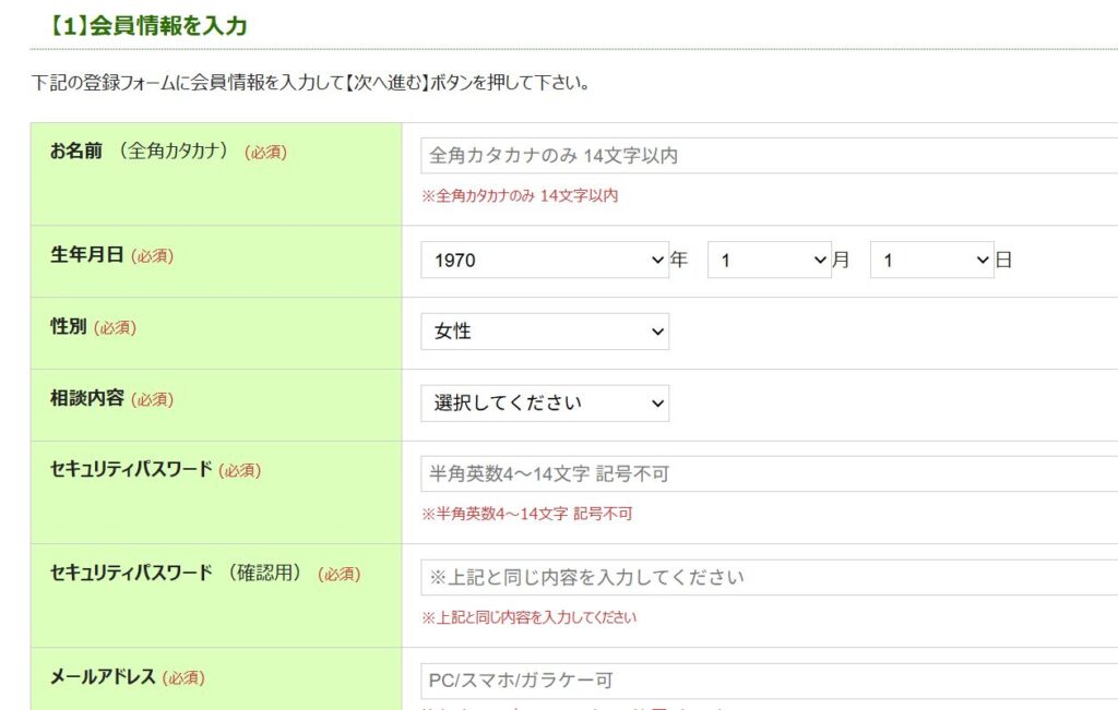 登録フォームに必要事項を記入しましょう。