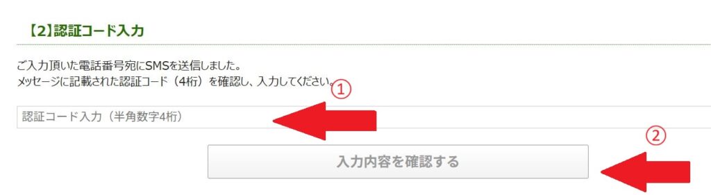 届いた4桁の認証コードを入力しましょう。