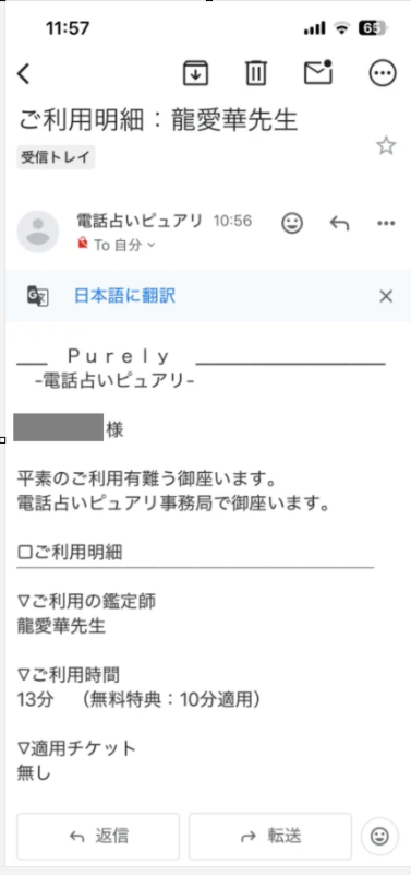 龍愛華先生の場合、約12分間の鑑定が無料になりますよ♪
